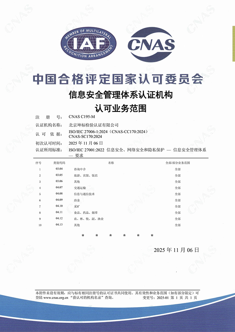 | CNAS-C195-M信息技術服務管理體系 | CNAS-C195-M信息安全管理體系 |